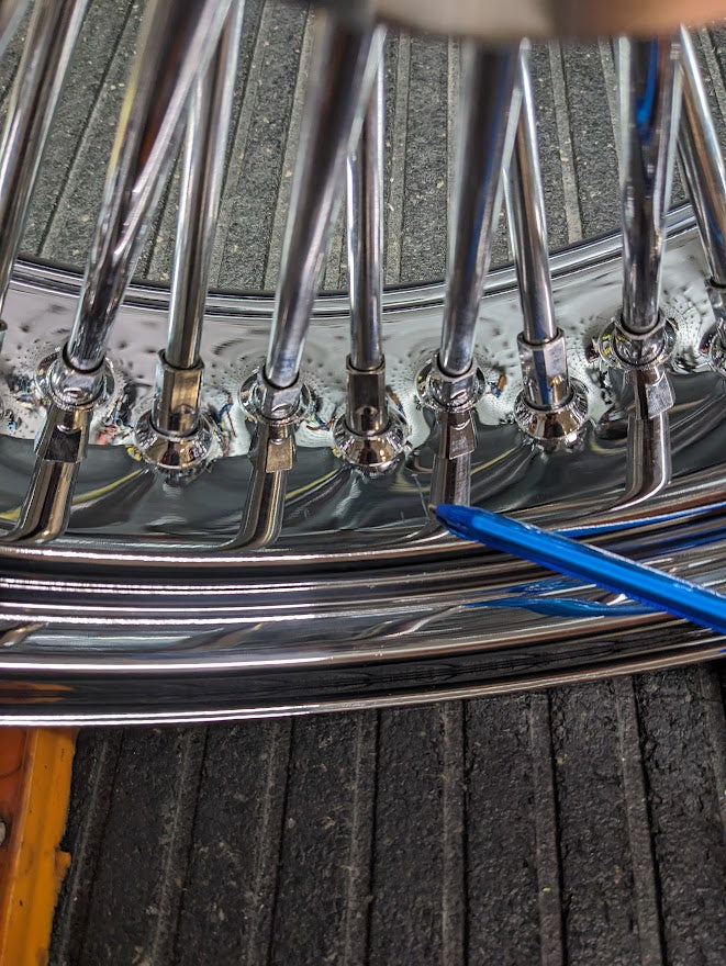 Beautiful 18x5.5 dual disc fat spoke wheel with a small scratch on the rim. $100 off!