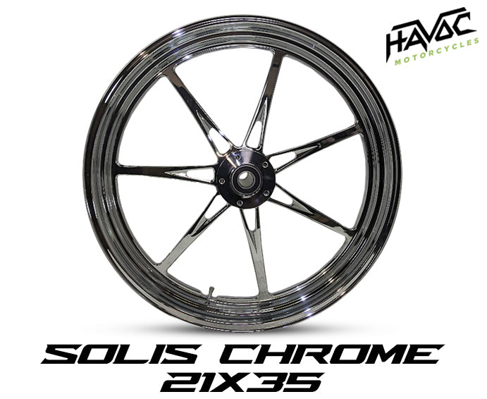 Turn heads and transform performance with the Solis by Havoc Motorcycles, a premium billet aluminum wheel designed for Harley-Davidson touring models (2000–2023). Available in the ever-popular 21x3.5 dual disc application, Solis delivers a perfect balance of conservative styling and refined elegance.